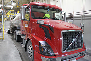 Steve and I hopped back in the cab and buckled up for our roughly two-hour journey. The truck—an automatic day cab fueled with natural gas—lurched forward, and we were on our way. Normally, Steve drives a different truck, but as it was currently in the shop for repairs, we used a back-up. Our first stop was a special gas station with the specific compressed natural gas (CNG) fuel required by our truck (or “tractor” as those in the biz would say). After about 10 minutes or so of fueling, we were ready to head to our destination—a large dairy operation.